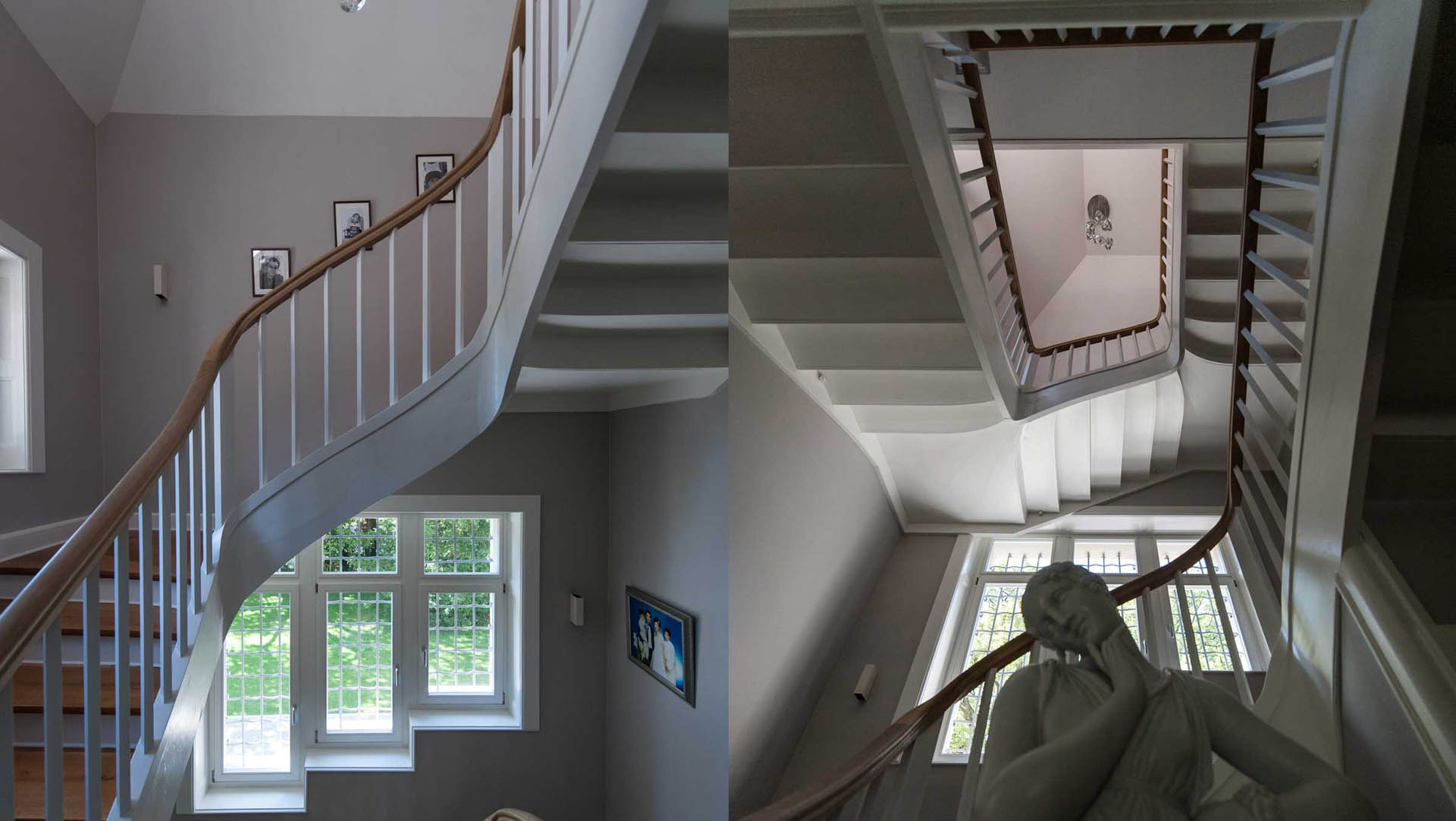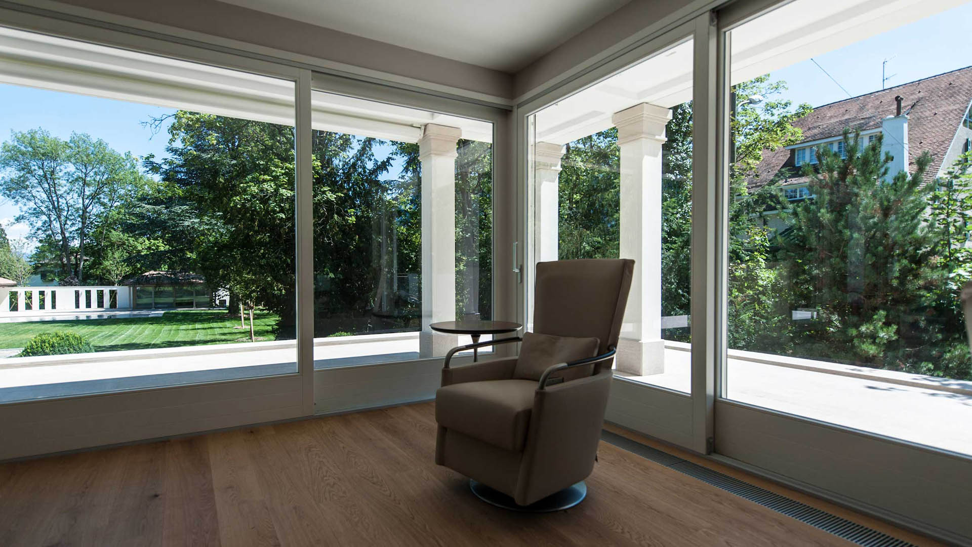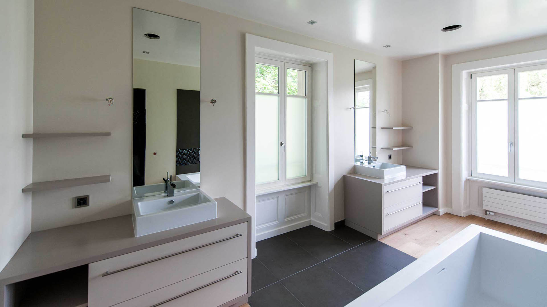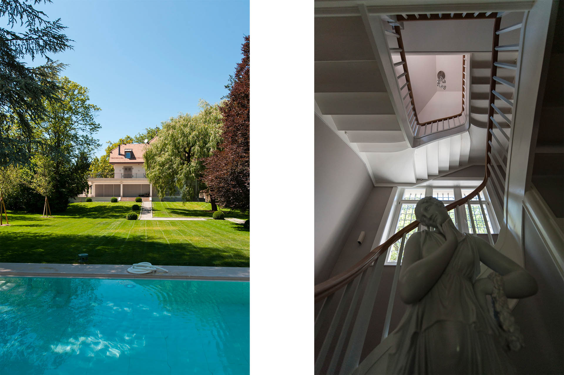 Située en zone villa, cette très belle propriété arborée de 4’125 m² n’avait pas subi de modification depuis les années soixante. La transformation a permis d’agrandir les espaces de jour au rez-de-chaussée, d’ajouter une chambre et une salle de bain aux étages, et de presque doubler la surface des sous-sols.