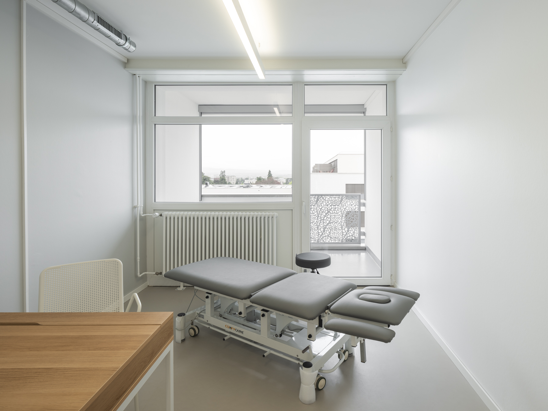 Ce projet a particulièrement marqué l’atelier, sensible à l’habitat des personnes âgées. Nous considérons comme un défi majeur de concevoir un environnement bâti capable d’évoluer et de se réinventer avec la société, tout en répondant aux exigences énergétiques et financières actuelles. Dans cet esprit, nous avons rénové un immeuble des années 70, en repensant entièrement son enveloppe énergétique et en transformant ses espaces intérieurs. Il accueille aujourd’hui des locataires aux besoins spécifiques, dans un cadre à vocation médicale. Il accueille aujourd’hui un usage mixte : cabinet médical, centre de physiothérapie, unité d’accueil temporaire IMAD et espaces administratifs, offrant ainsi un environnement adapté à des besoins variés et spécifiques.