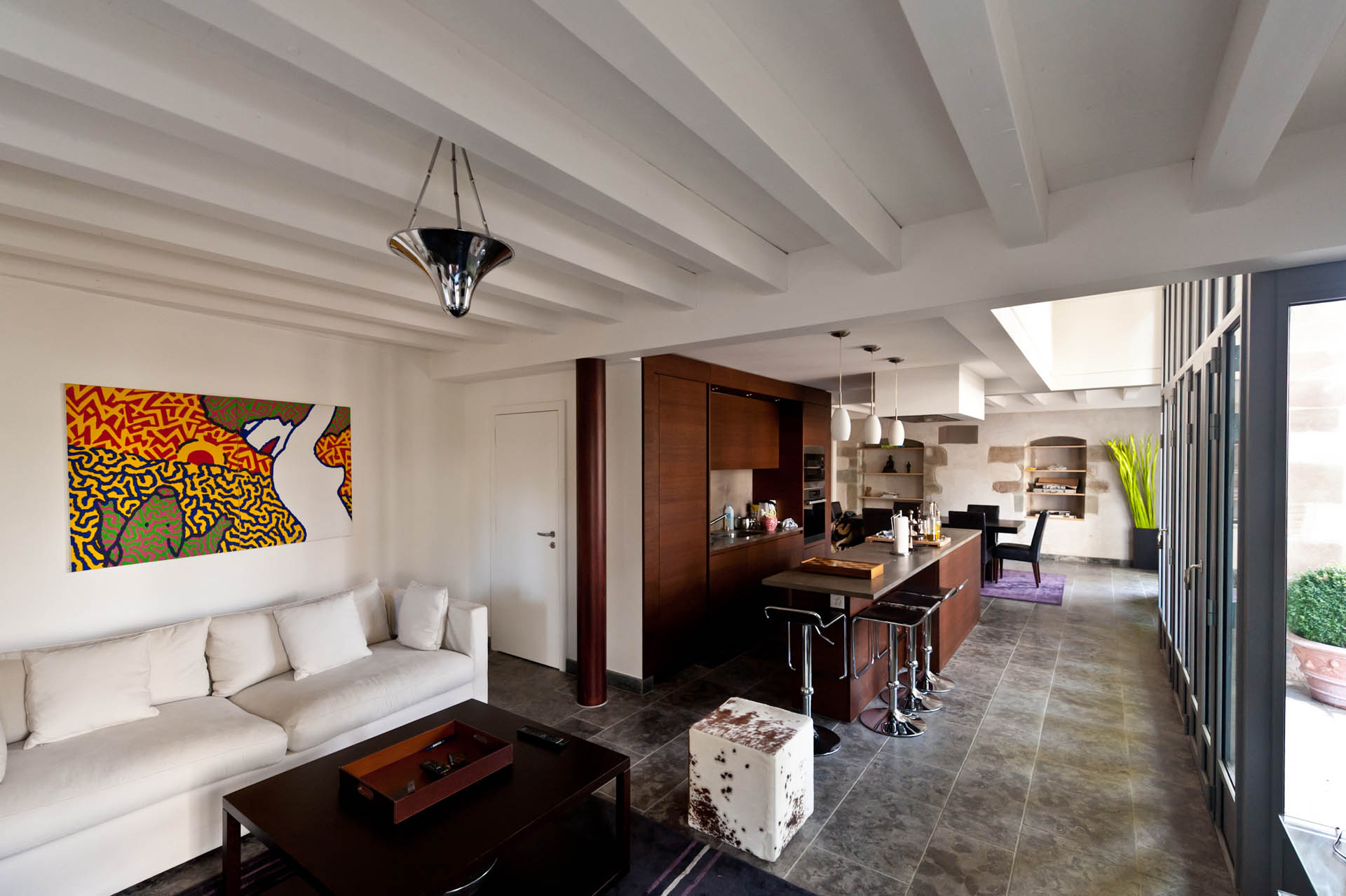 L’autre défi d’importance consistait à reprendre l’ensemble des réseaux techniques, afin de mettre en adéquation la technologie et le confort moderne en conservant les structures, enduits et staff, ayant valeur de patrimoine.