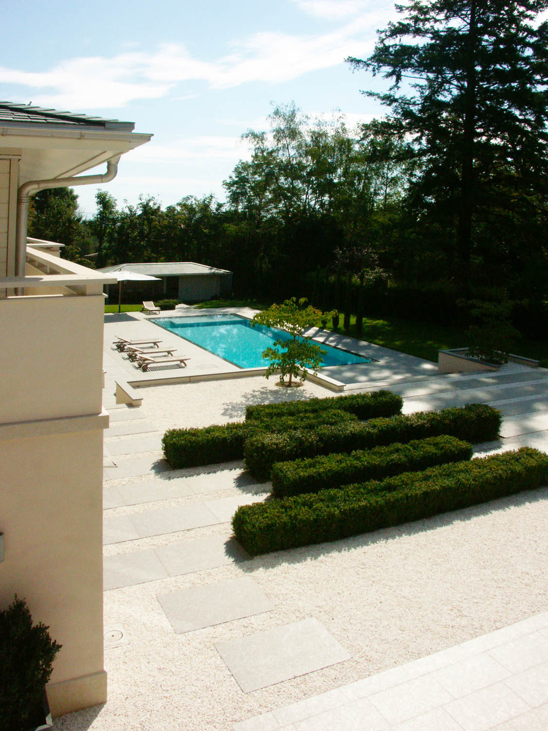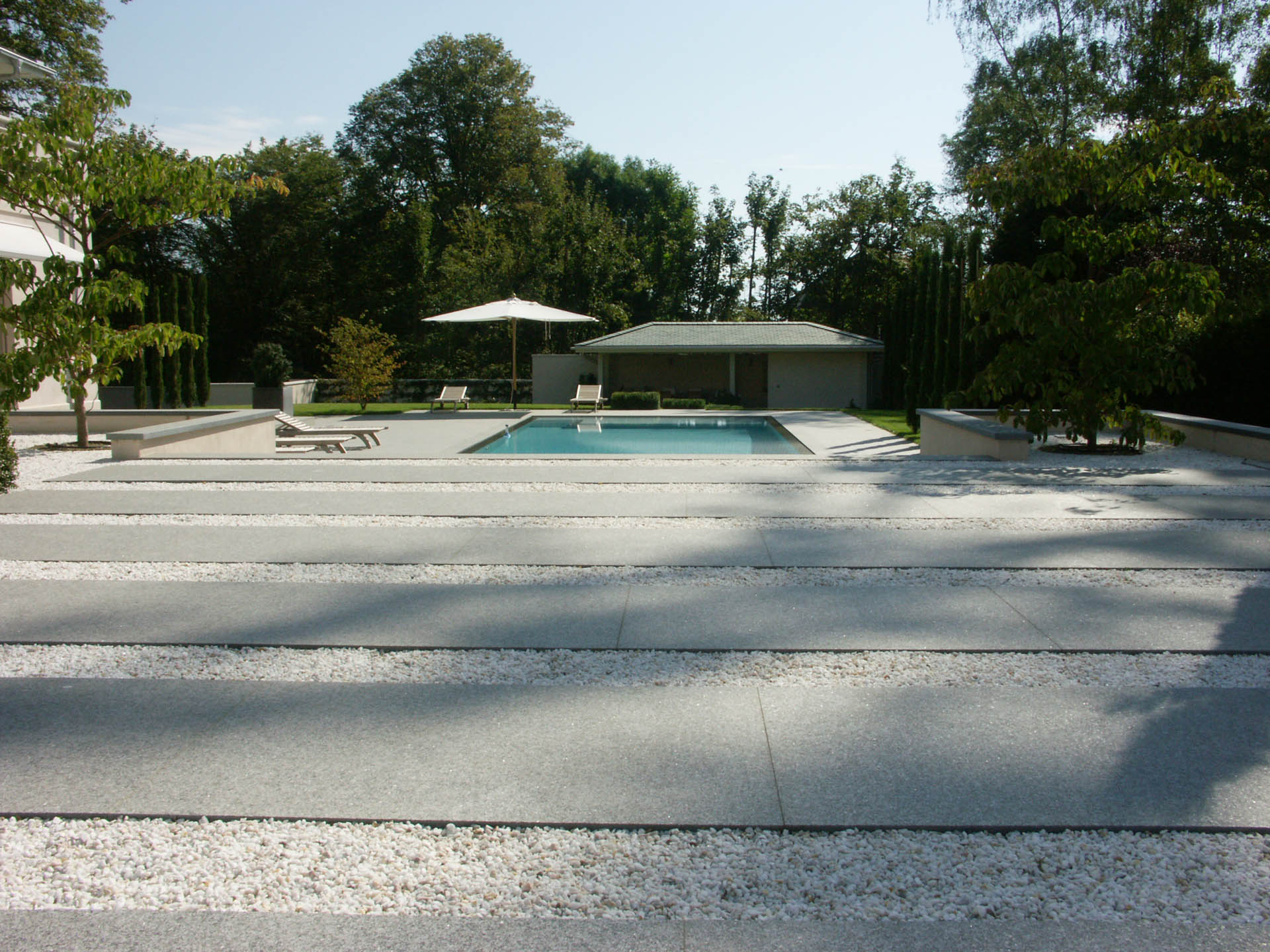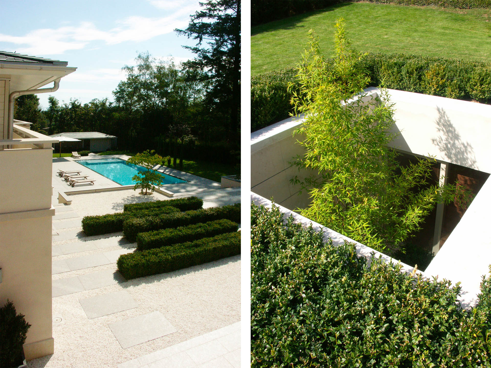 L’utilisation des espaces à vivre s’organise selon l’orientation du soleil et privilégie une relation directe avec le jardin minéral et la piscine protégée des vents dominants.