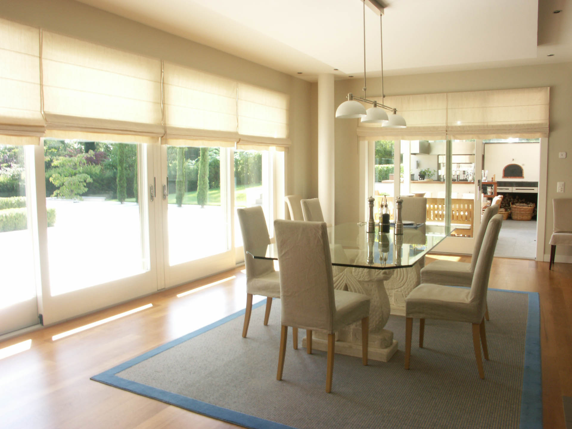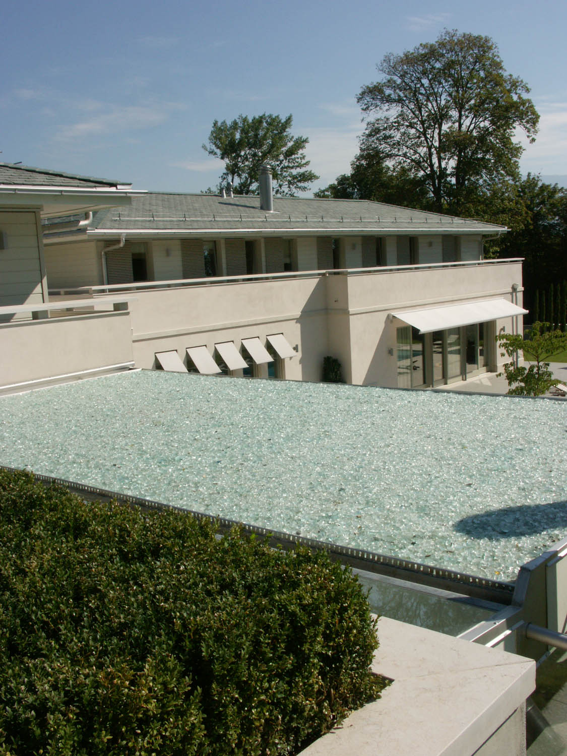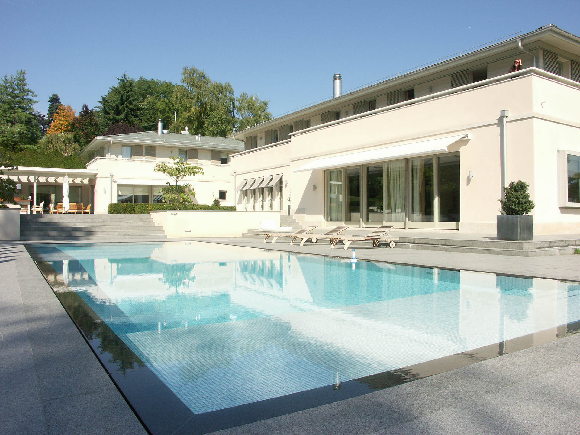 L’utilisation des espaces à vivre s’organise selon l’orientation du soleil et privilégie une relation directe avec le jardin minéral et la piscine protégée des vents dominants.