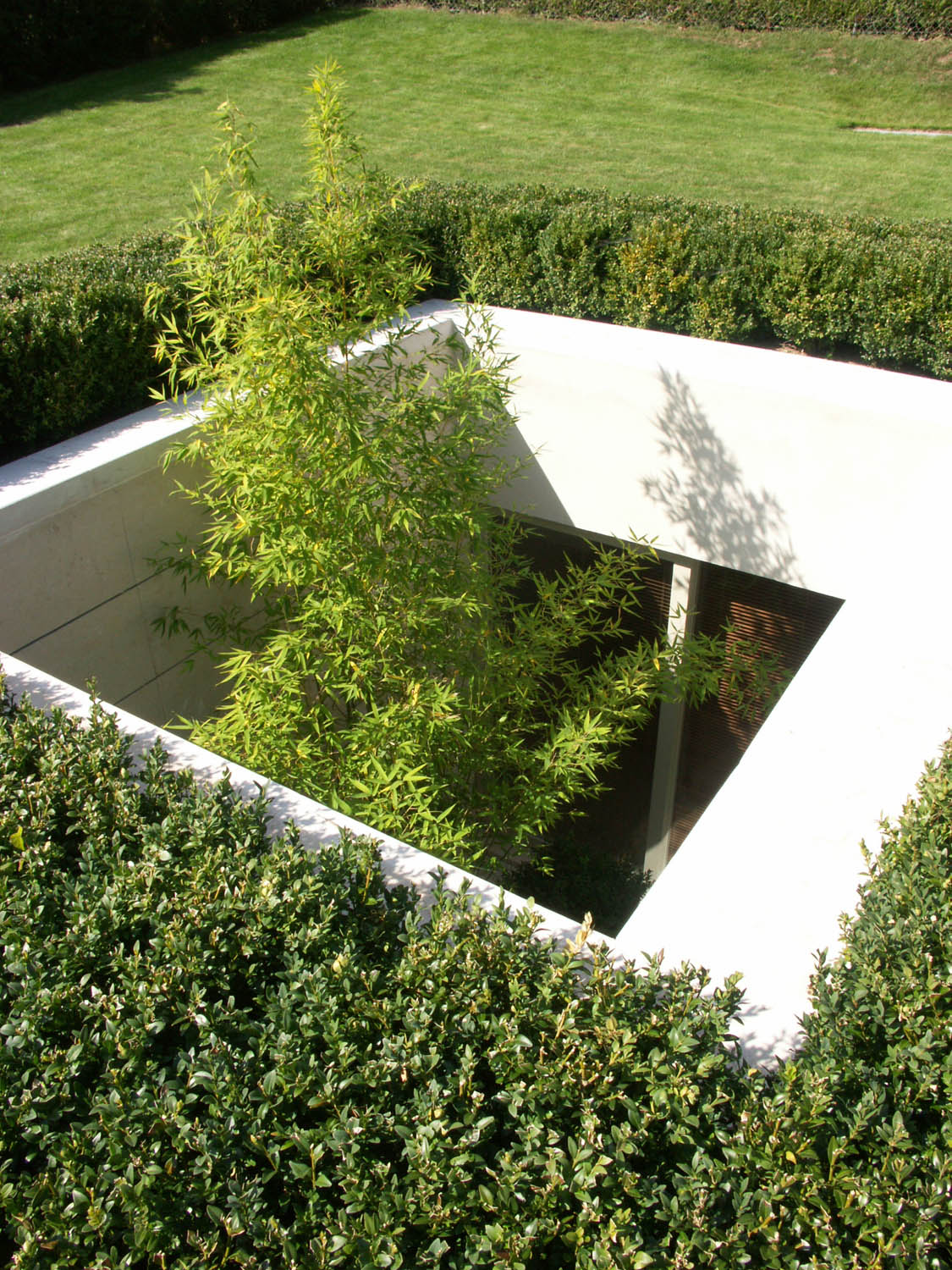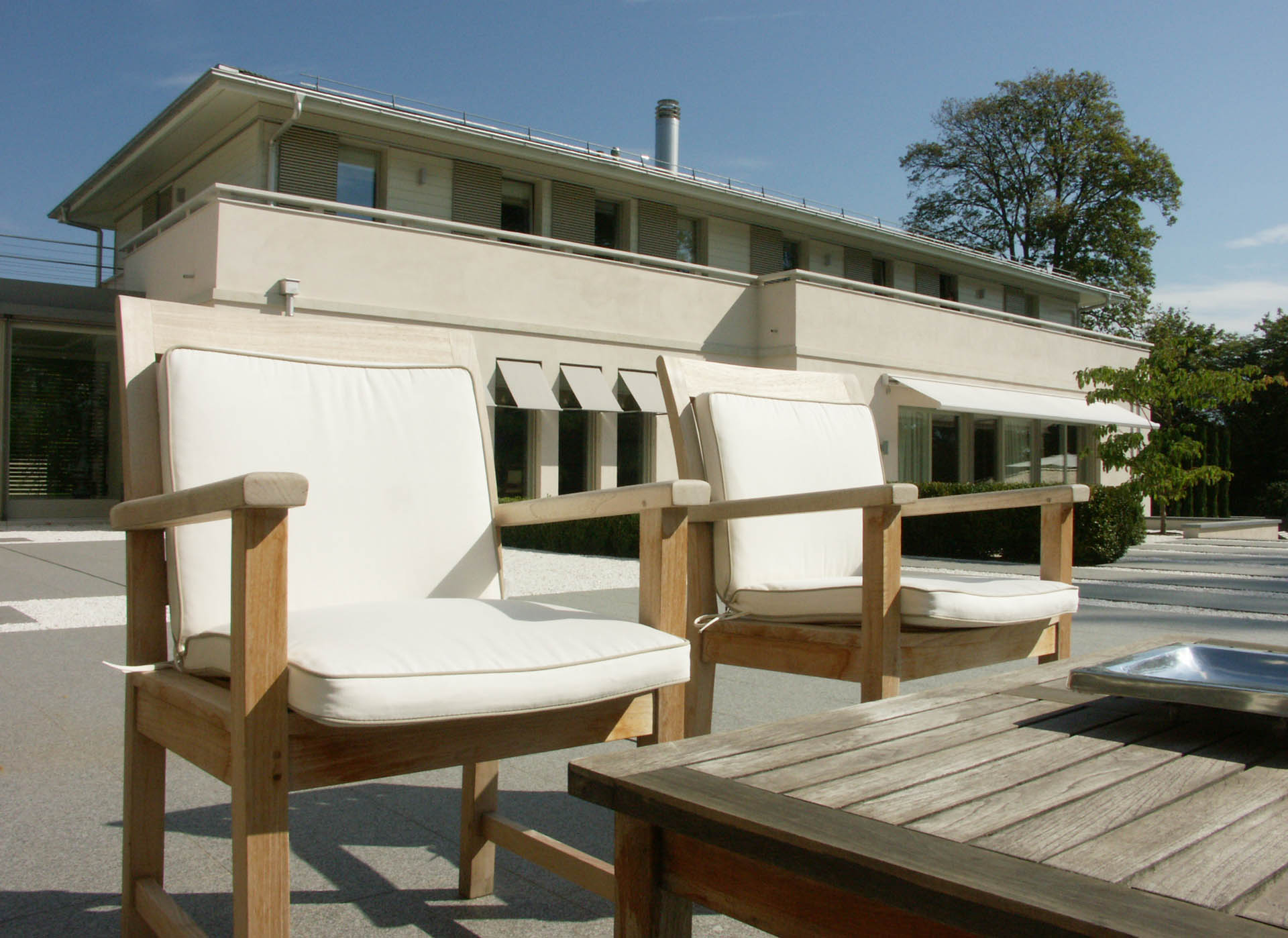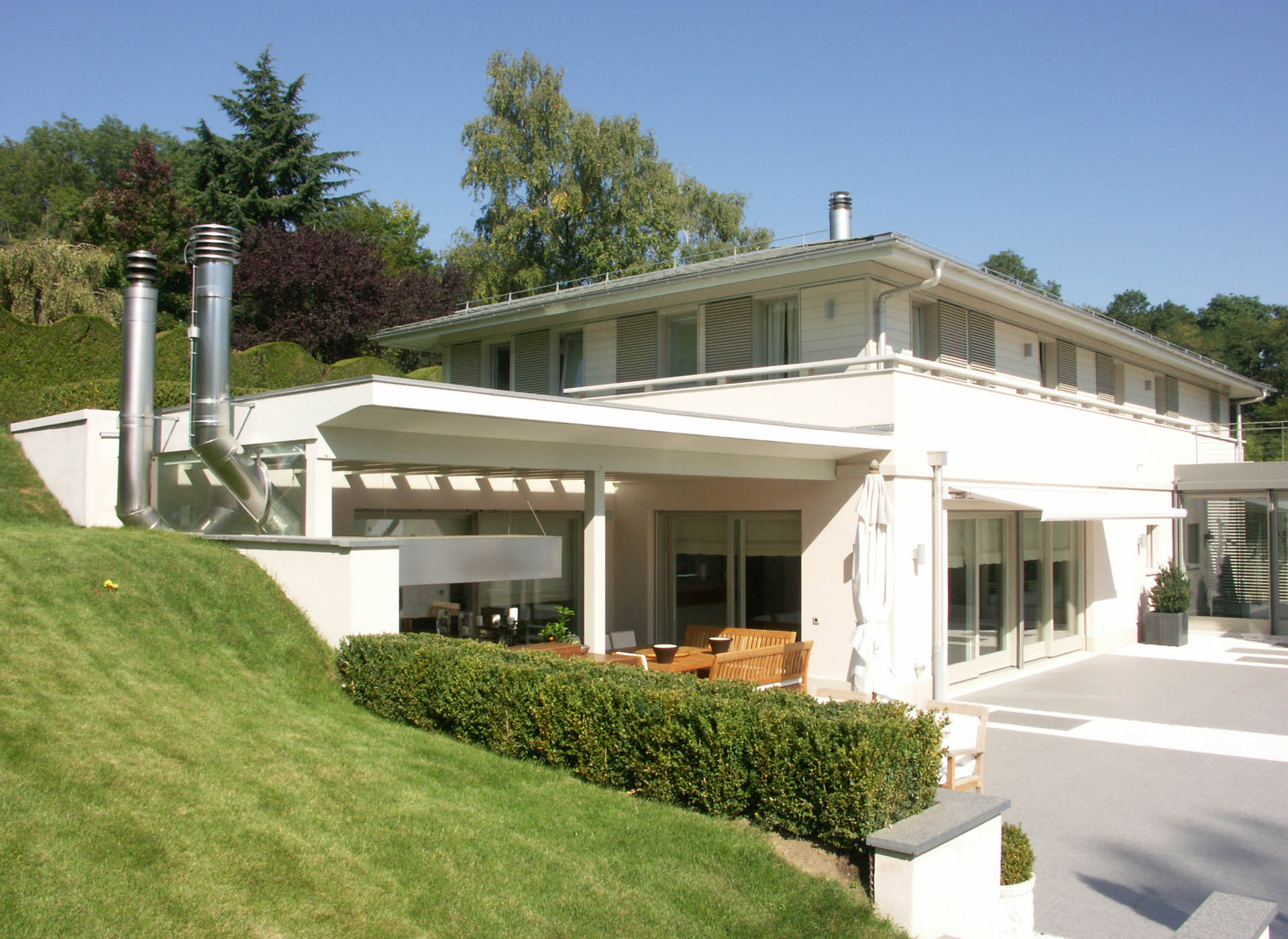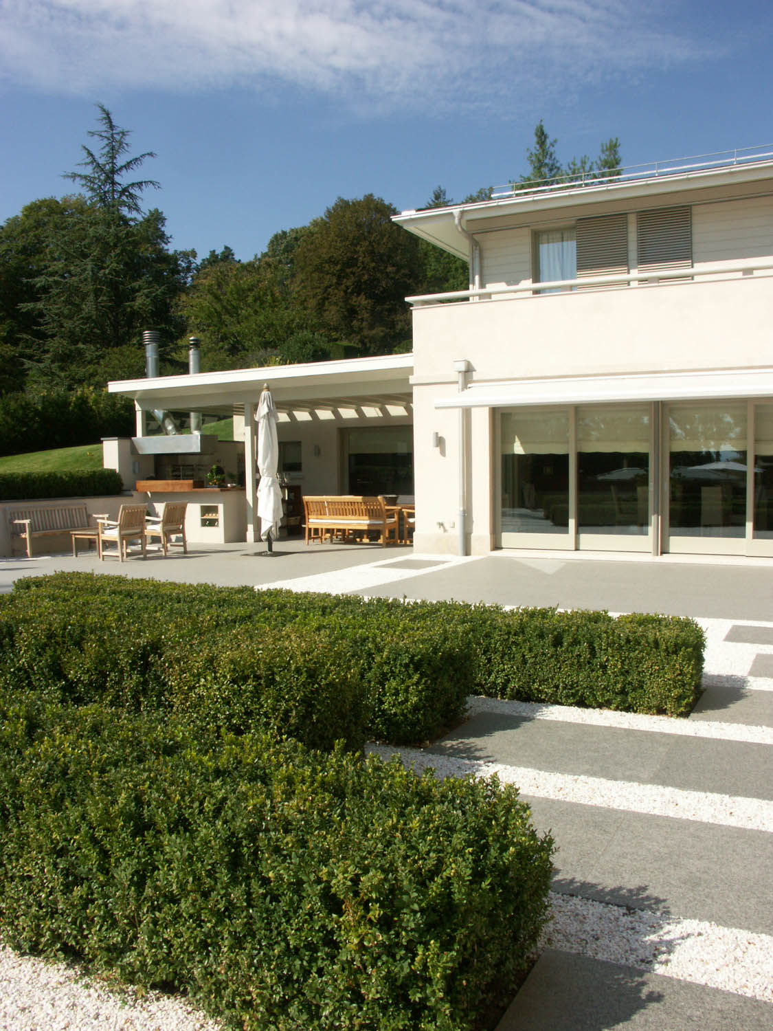 La déclivité de la parcelle intègre discrètement le parking souterrain et les locaux de services.