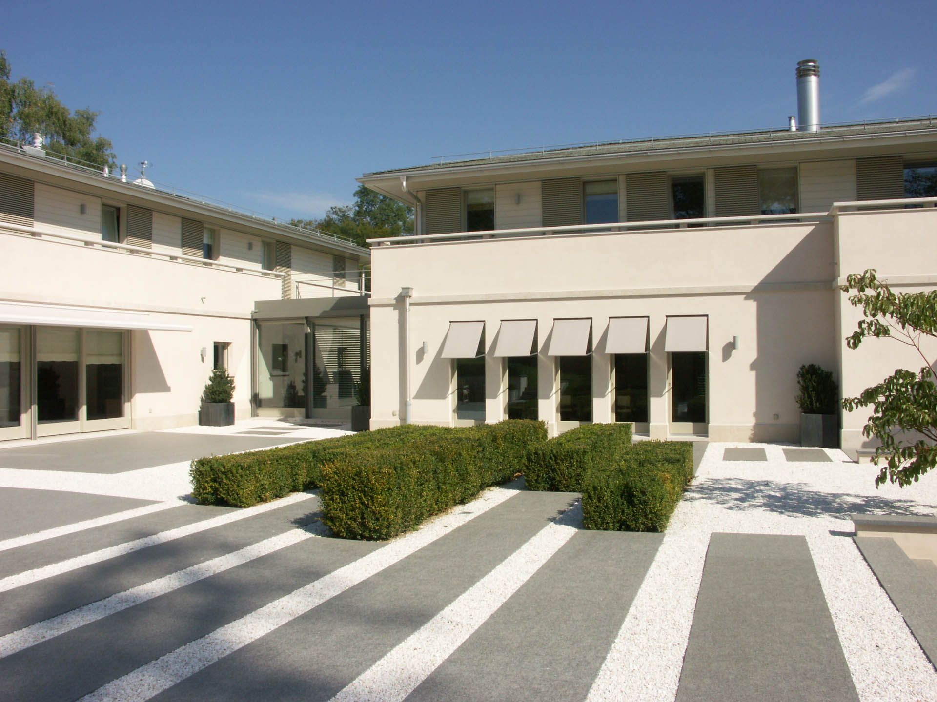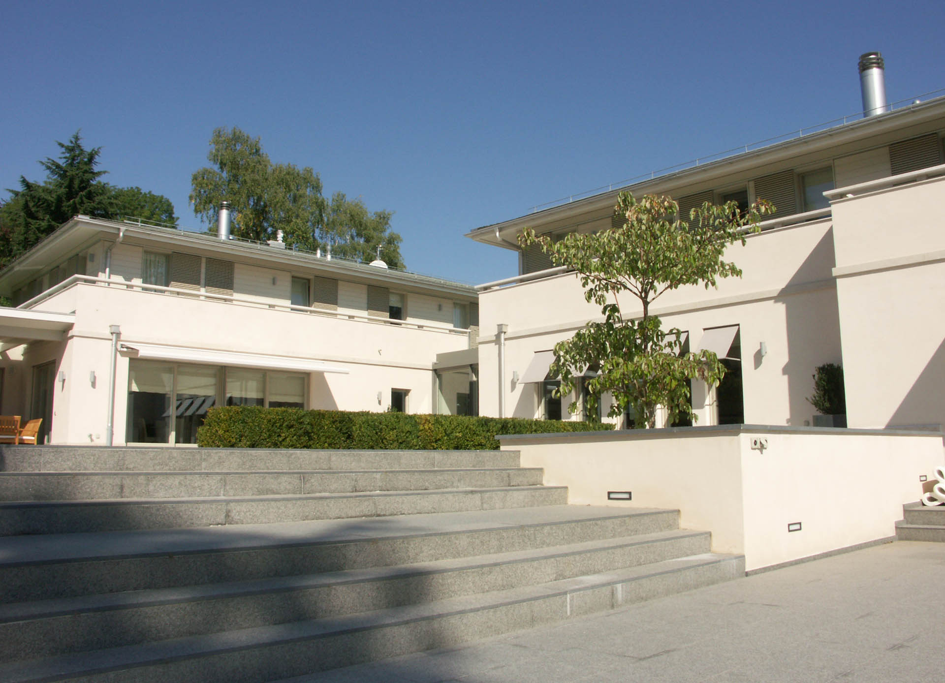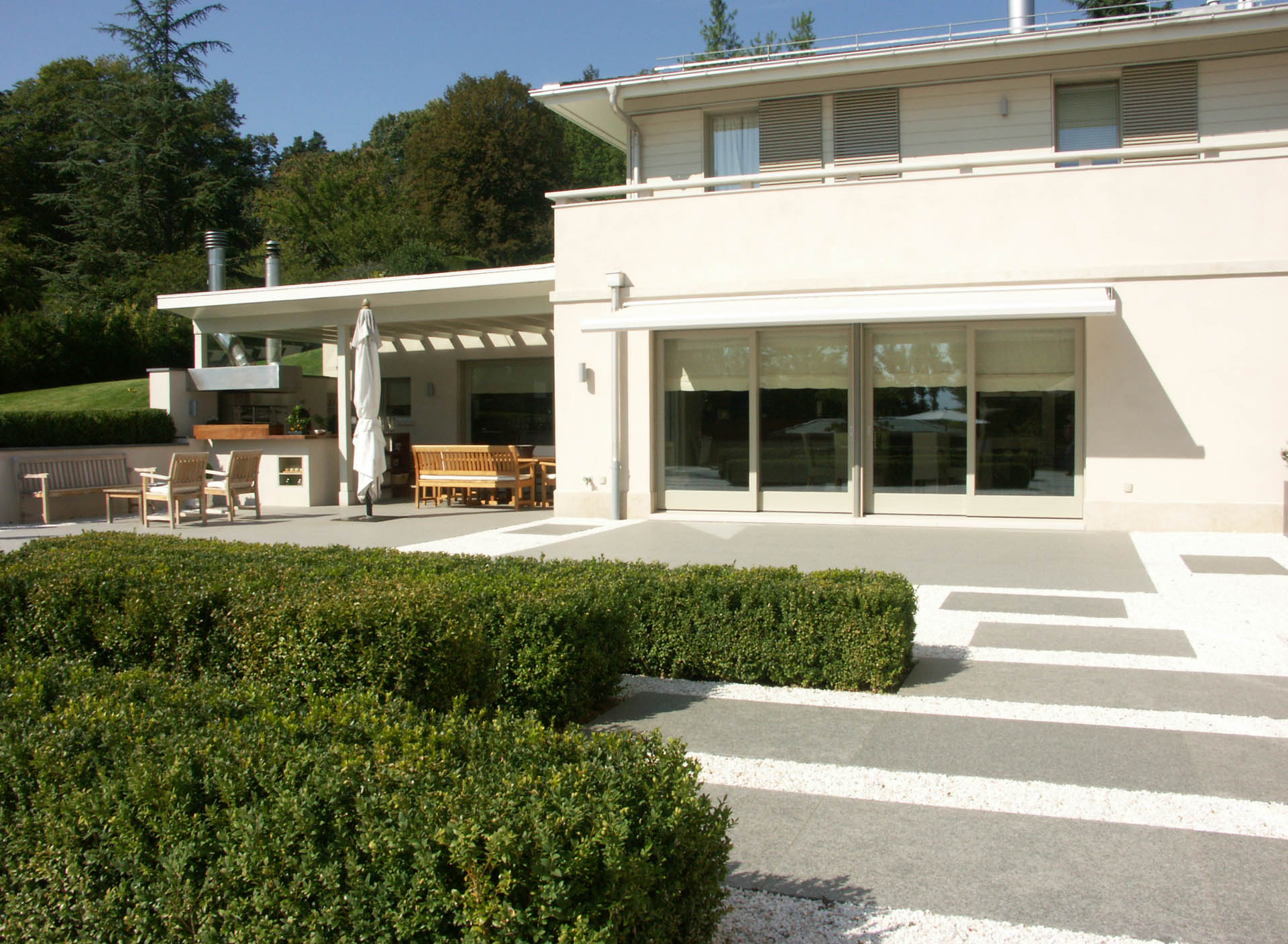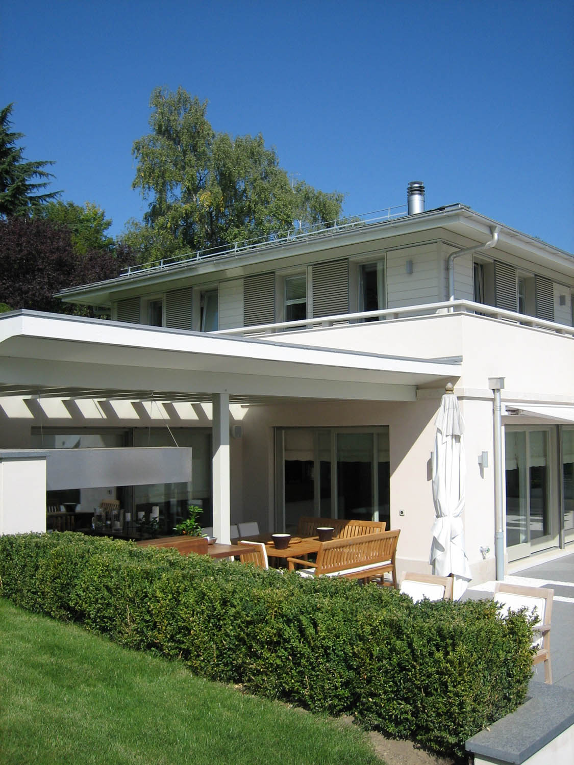 La déclivité de la parcelle intègre discrètement le parking souterrain et les locaux de services.