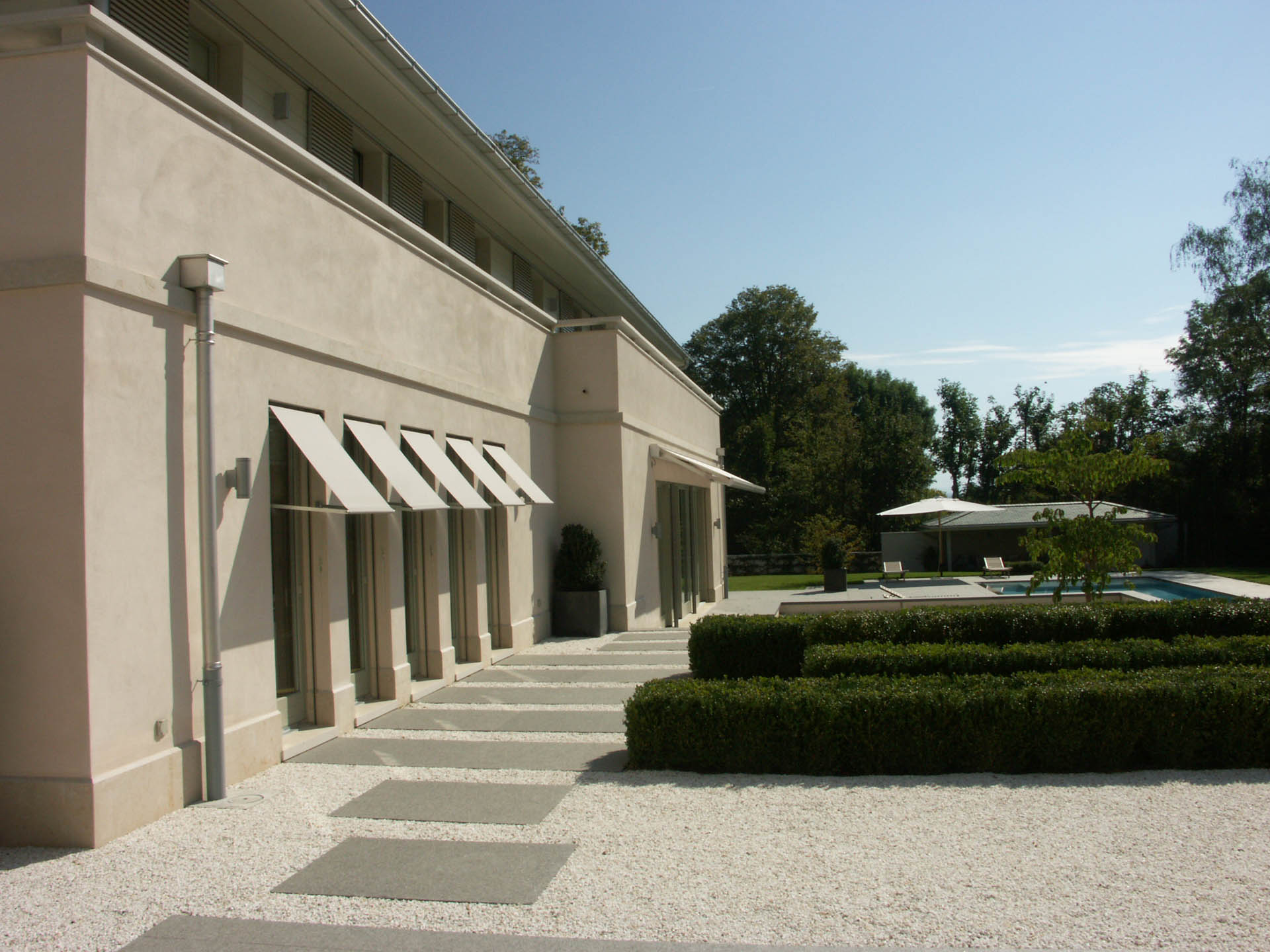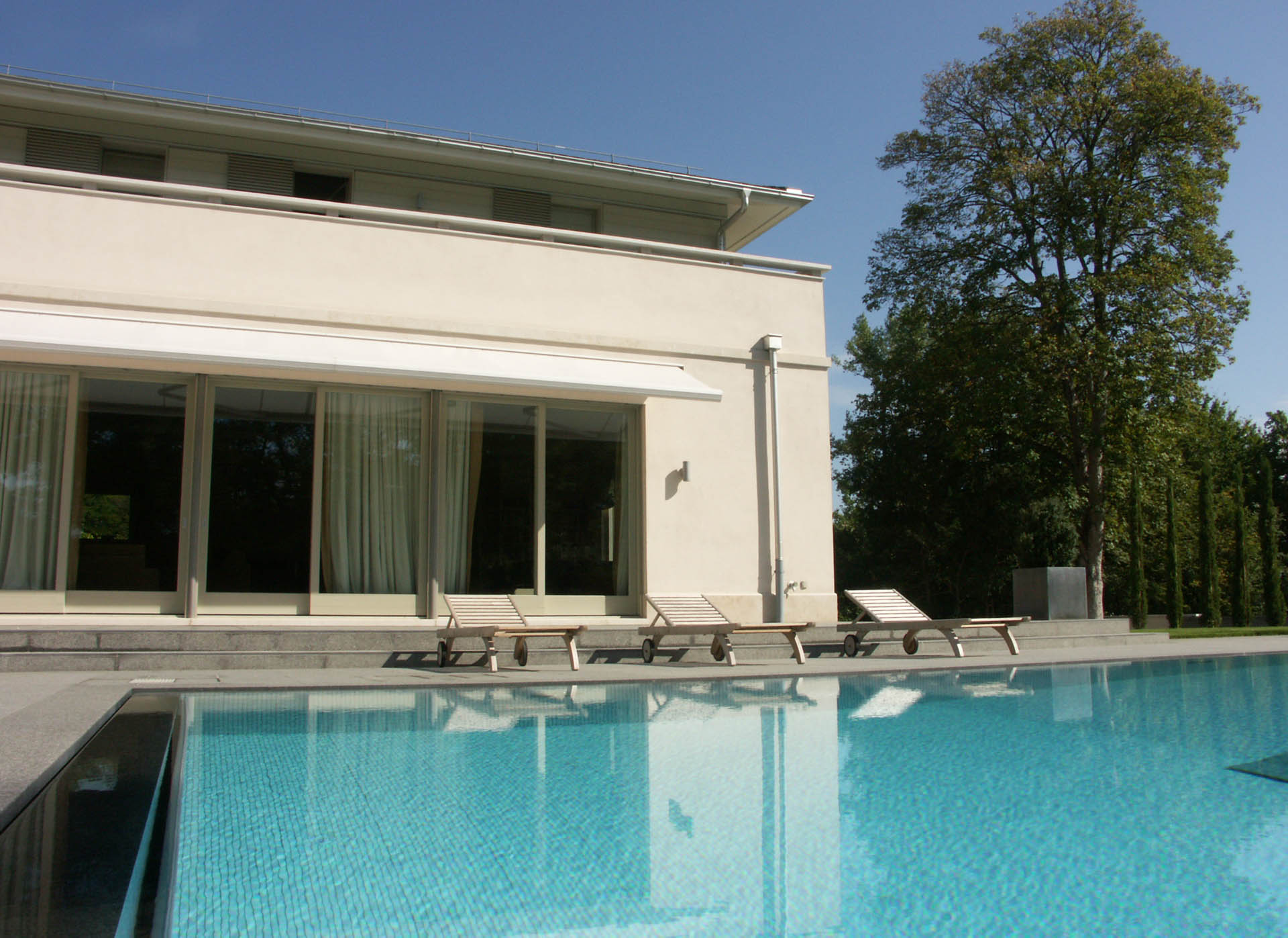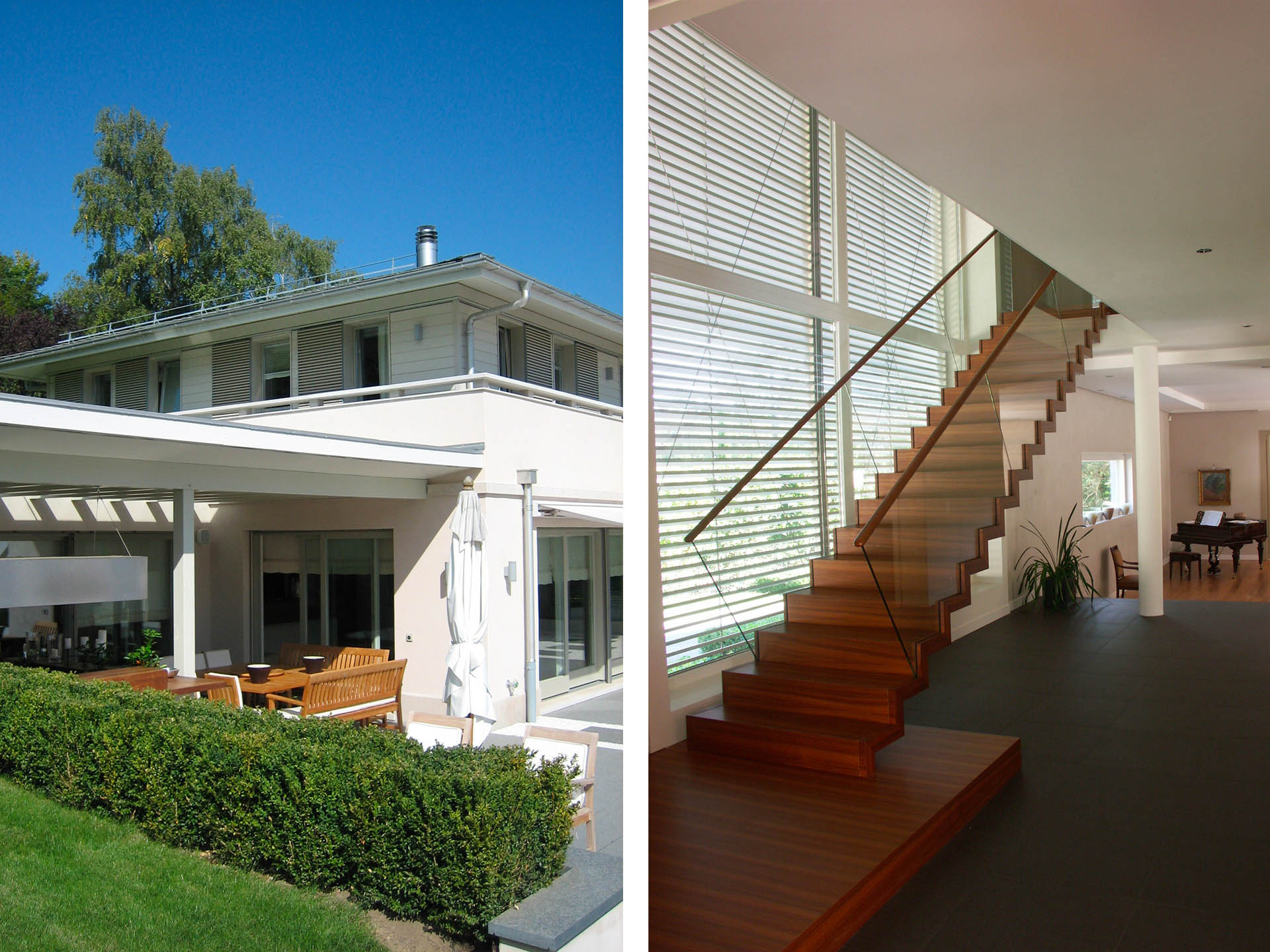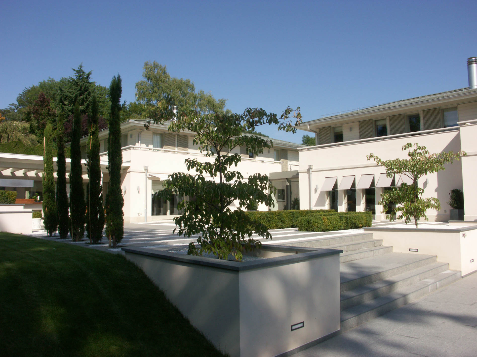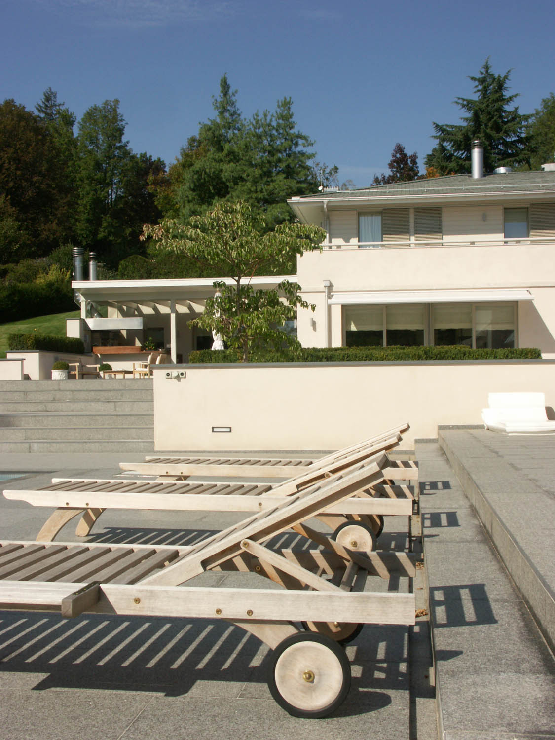 La déclivité de la parcelle intègre discrètement le parking souterrain et les locaux de services.