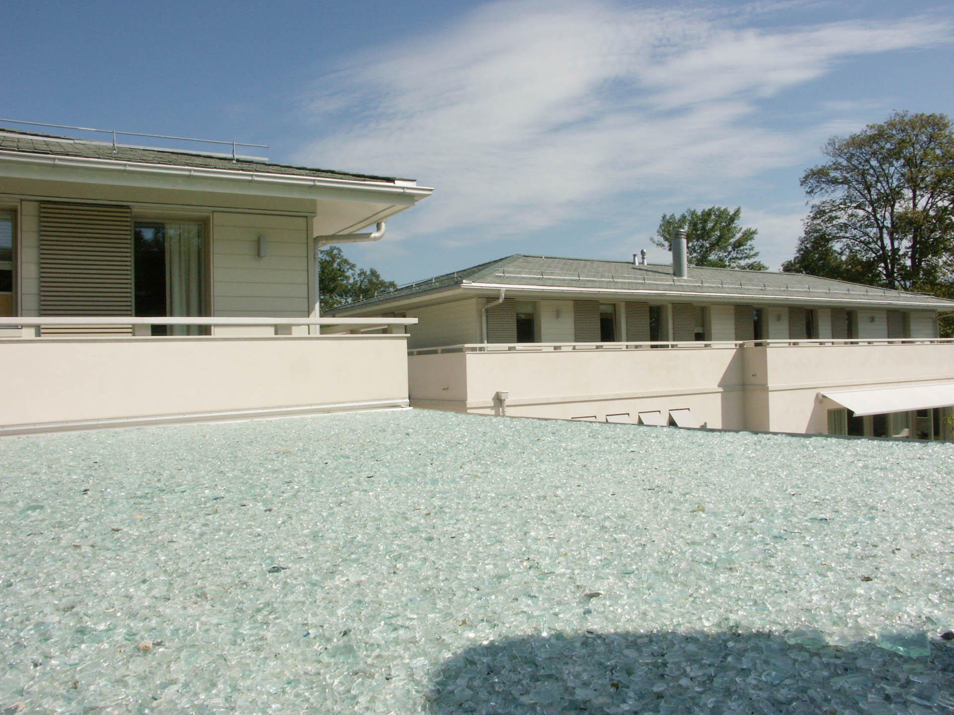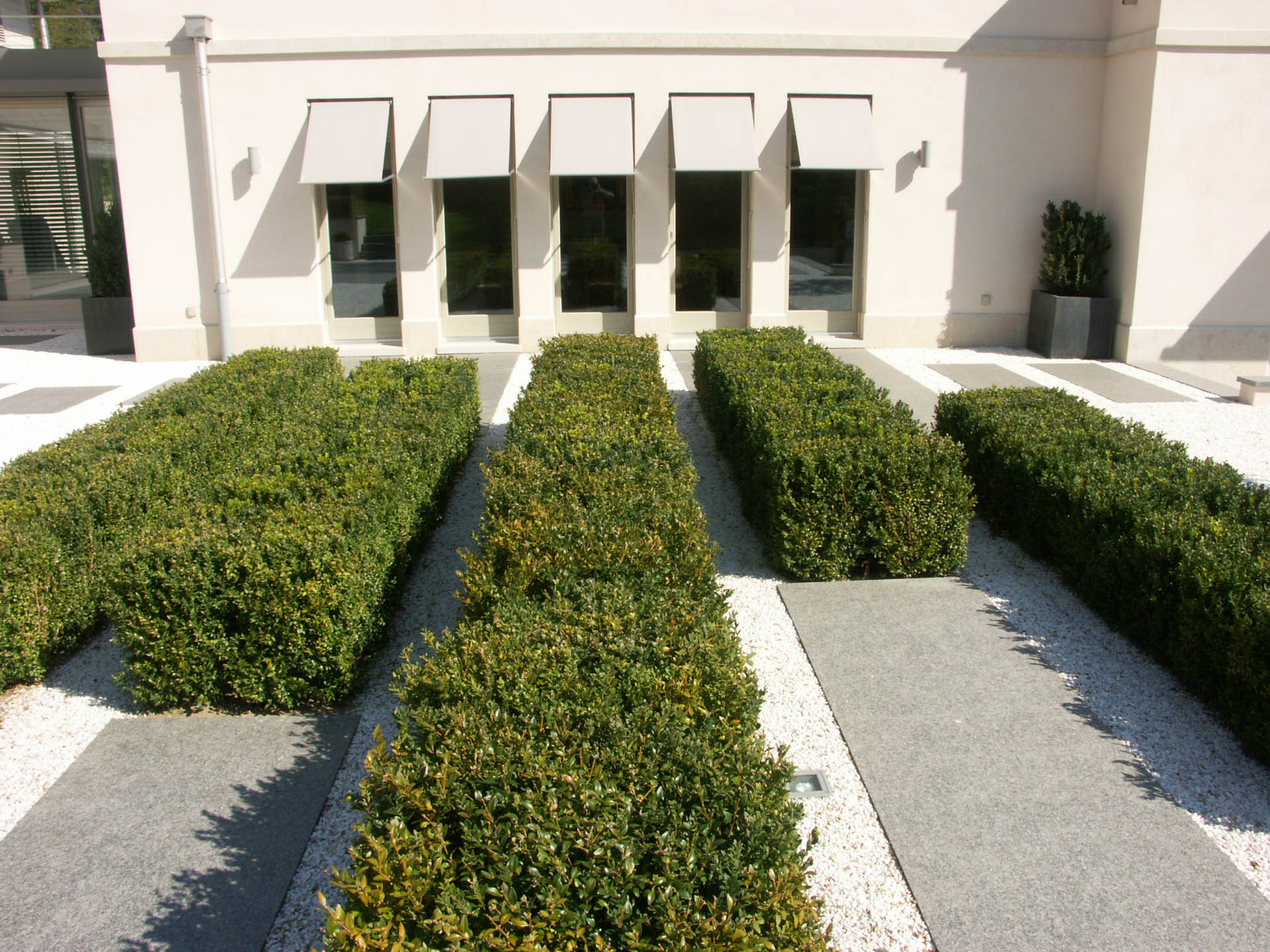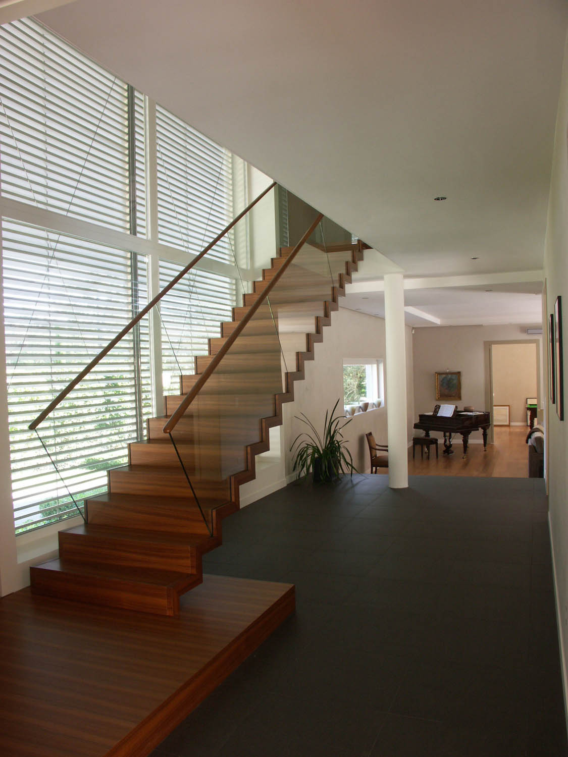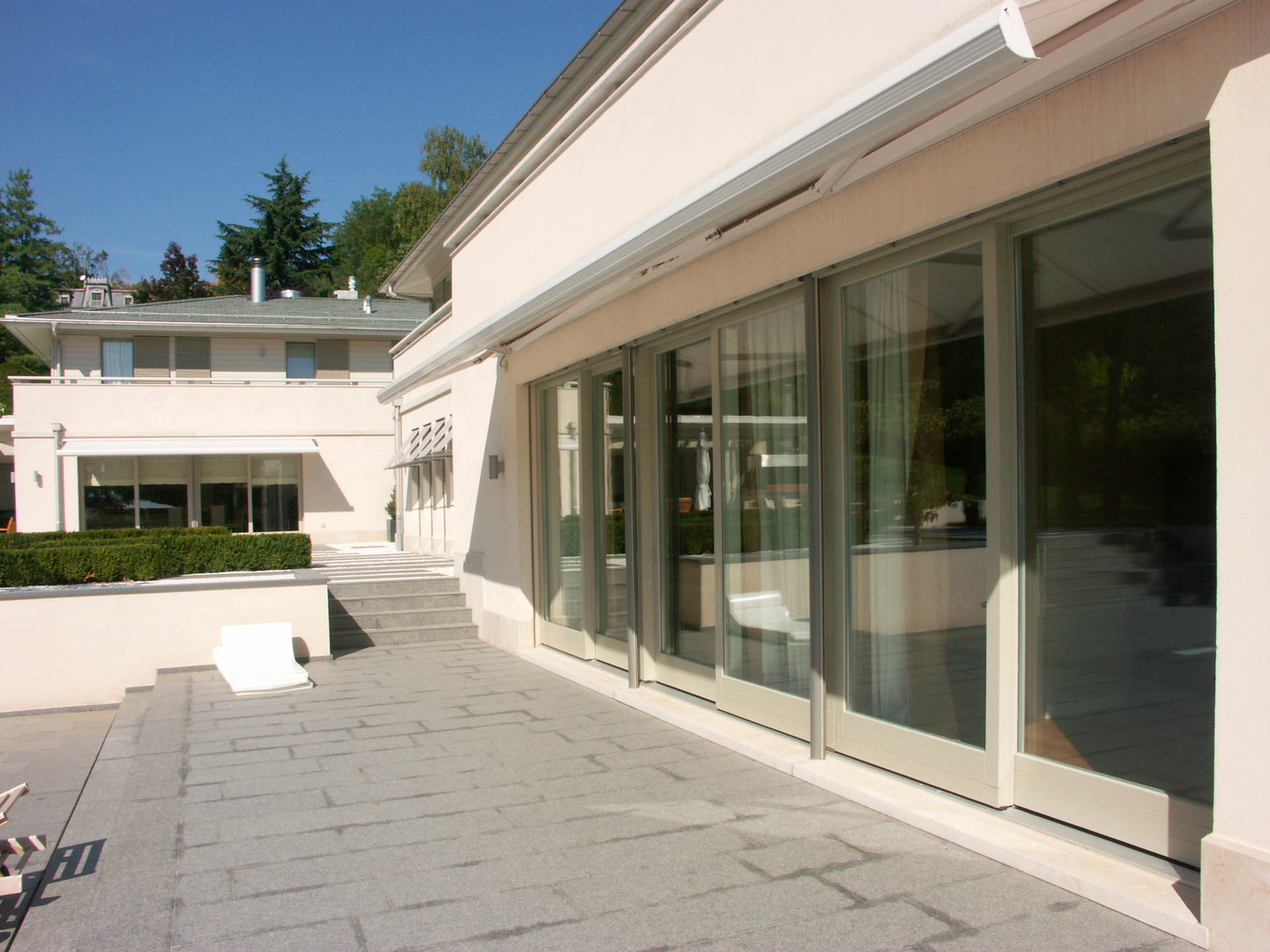 La déclivité de la parcelle intègre discrètement le parking souterrain et les locaux de services.