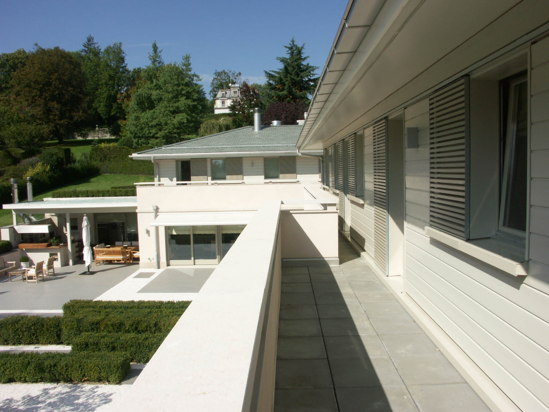 Les chambres d’enfants bénéficient pour partie d’un jardin en rez supérieur, les parents et les invités de terrasses et coursives ensoleillées à l’étage.