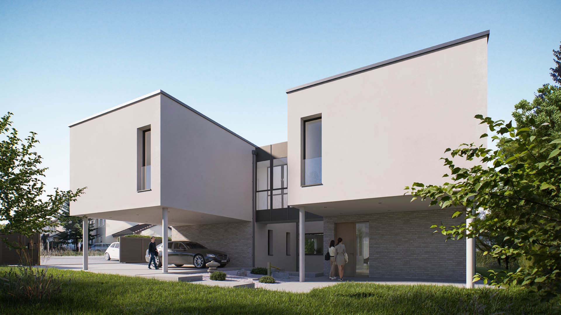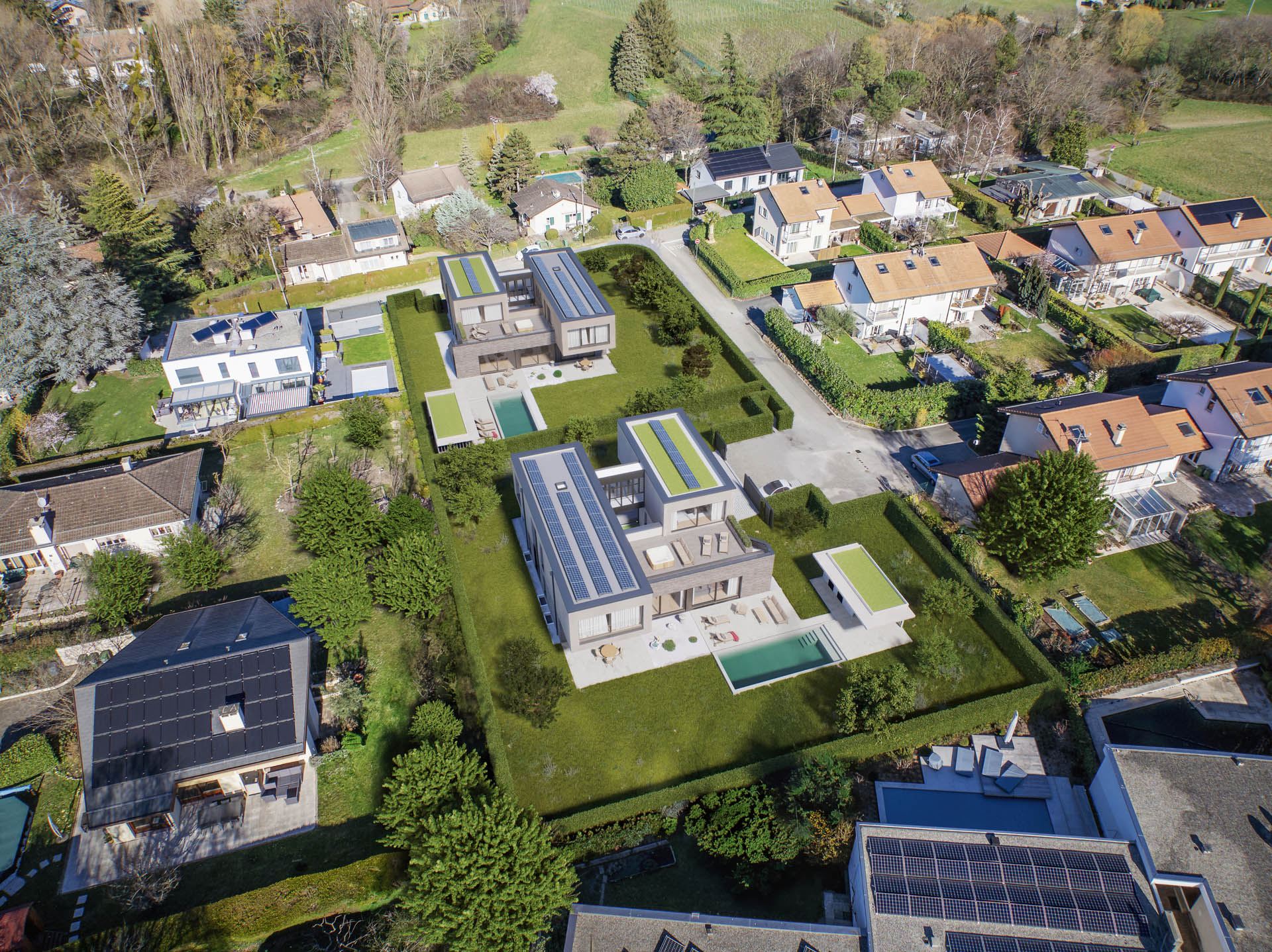 Dans un cadre marqué par une multitude de servitudes et des contraintes légales, sur un terrain présentant une très faible déclivité, l’objectif du maître d’ouvrage est de concevoir deux habitations individuelles. Situées sur la commune de Corsier, ces constructions neuves de 167 et 132 m2 ont chacune été pensées selon leur environnement, comme 2 entités distinctes dans un ensemble cohérent.
