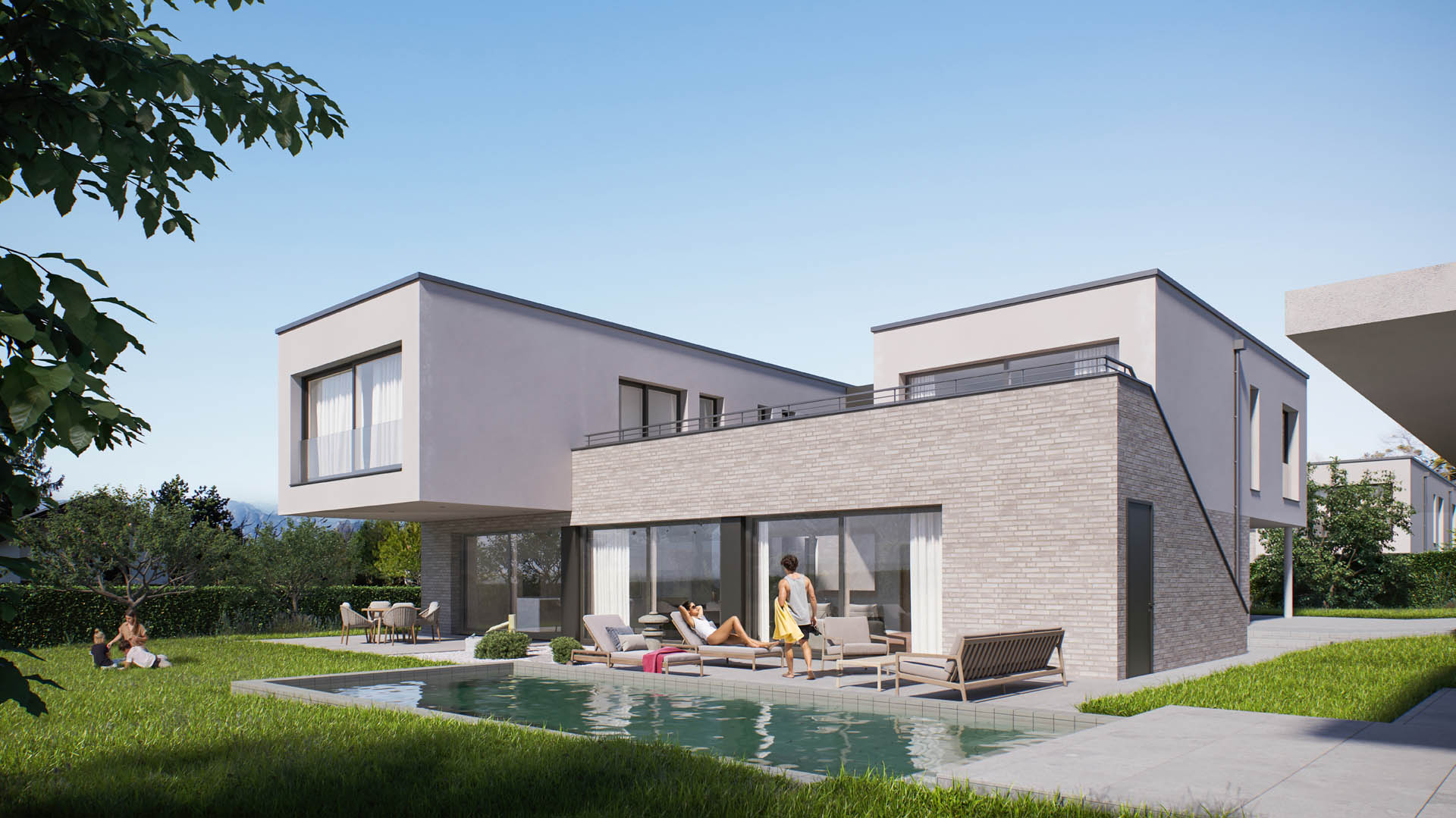 Le projet vise à recréer un cadre végétal offrant des lieux de vie, tout en redéfinissant les espaces pour créer un microcosme et préserver l’intimité des familles qui y résideront. Les villas se présentent comme un assemblage de volumes effilés autour d’un patio central. L’architecture, percée de larges baies, joue avec les multiples orientations et révèle des espaces baignés de lumière. Plusieurs dispositifs comme des porte-à-faux, de larges cadrages, un parcours autour du patio et une passerelle vitrée apportent des qualités singulières à chaque pièce.