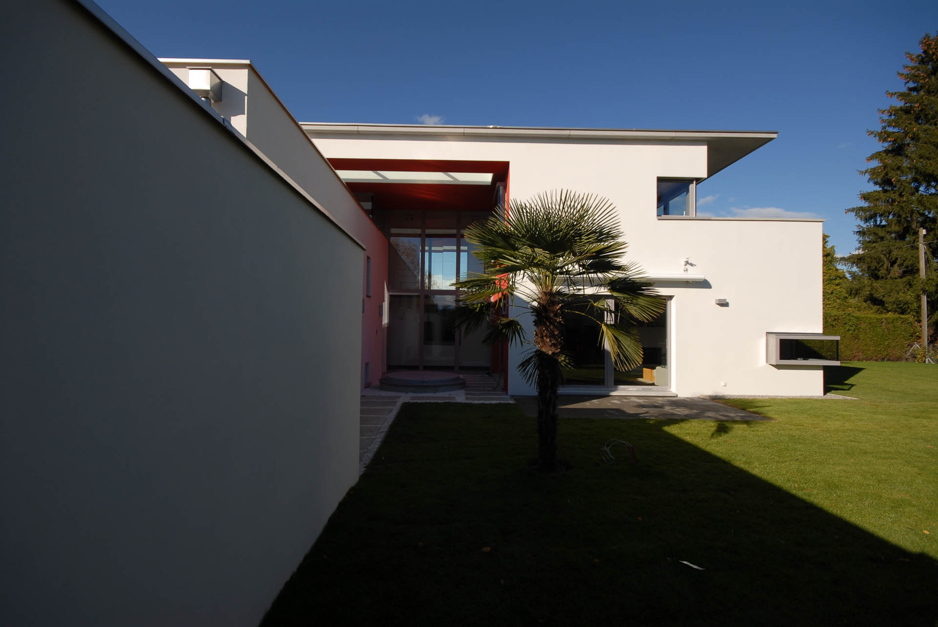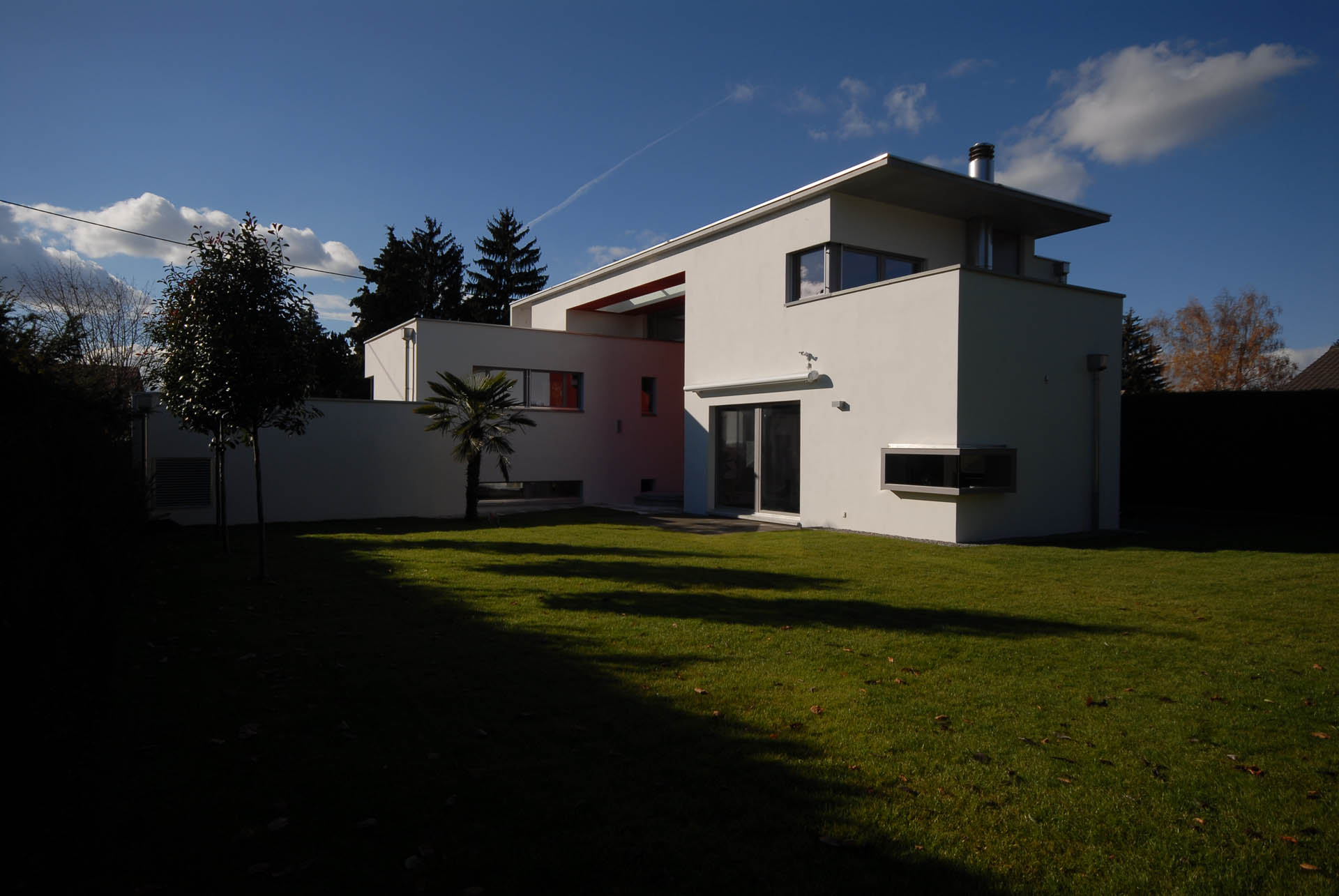 Par son implantation en L, proche des limites parcellaires, cette villa libère, malgré les dimensions restreintes de la parcelle, un joli jardin privatif aux vues protégées des voisins.