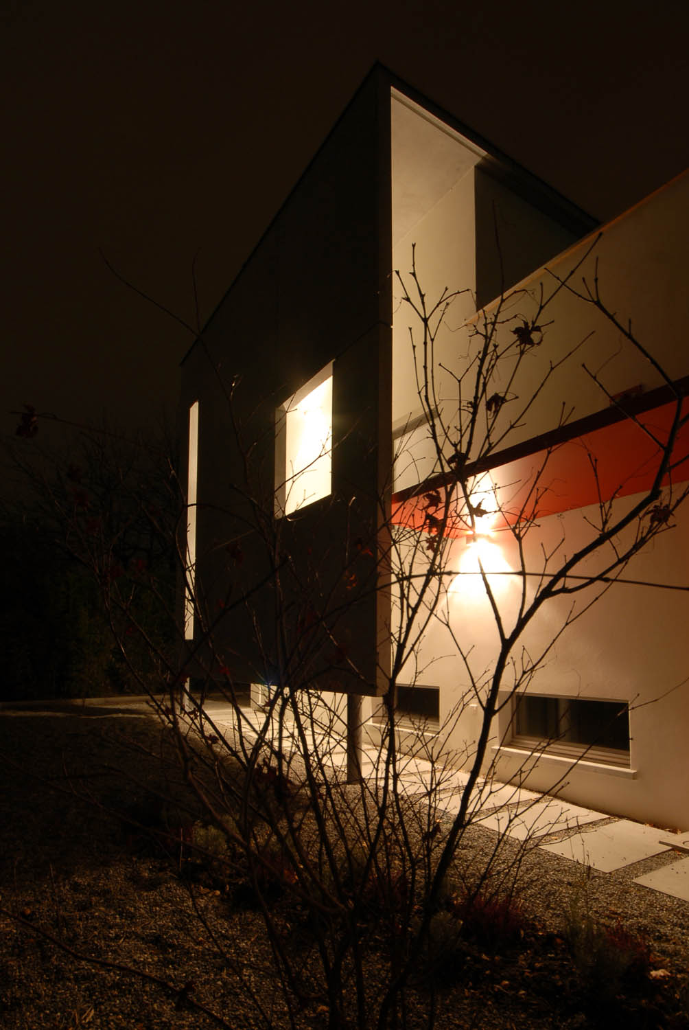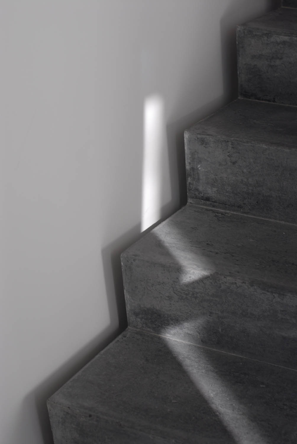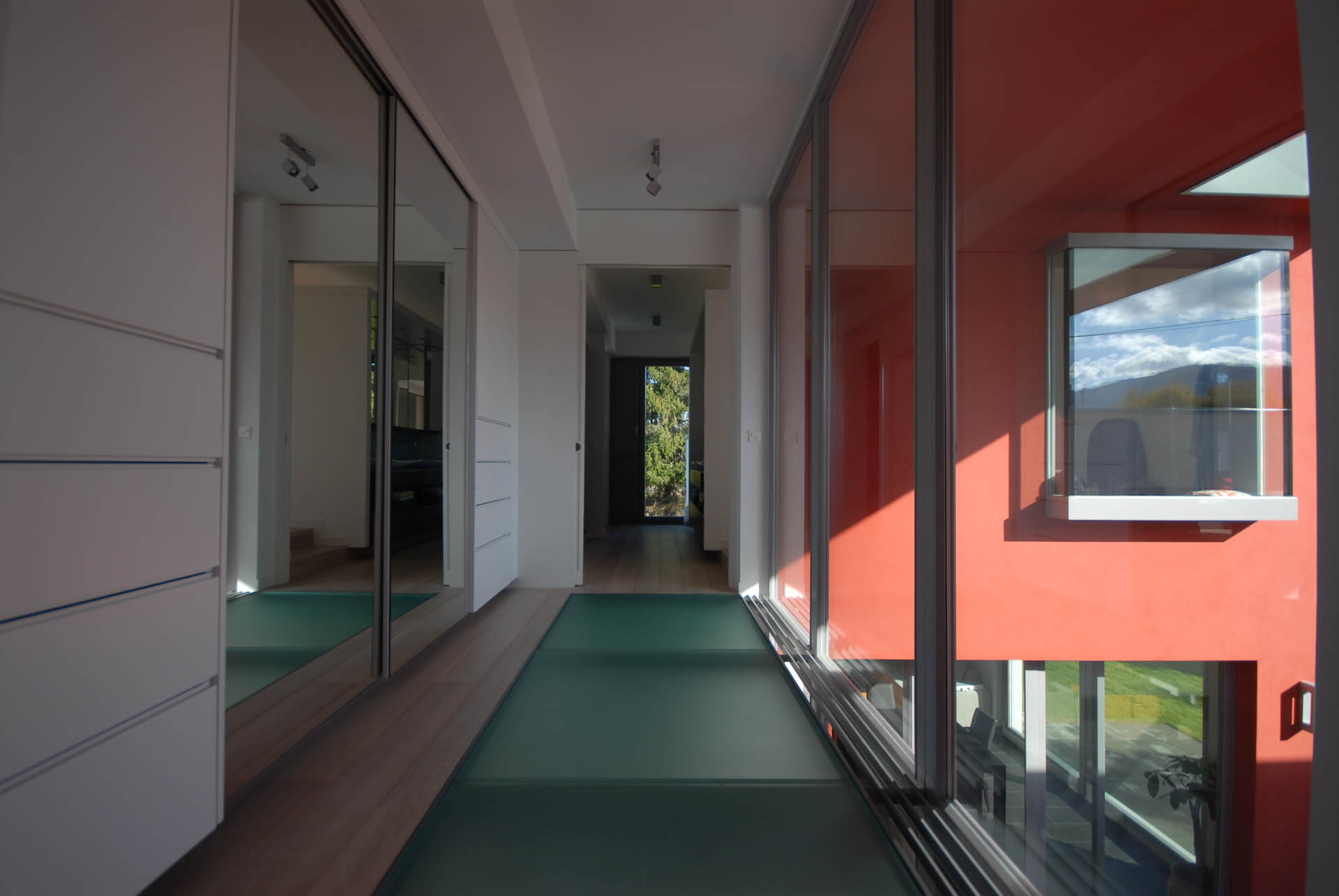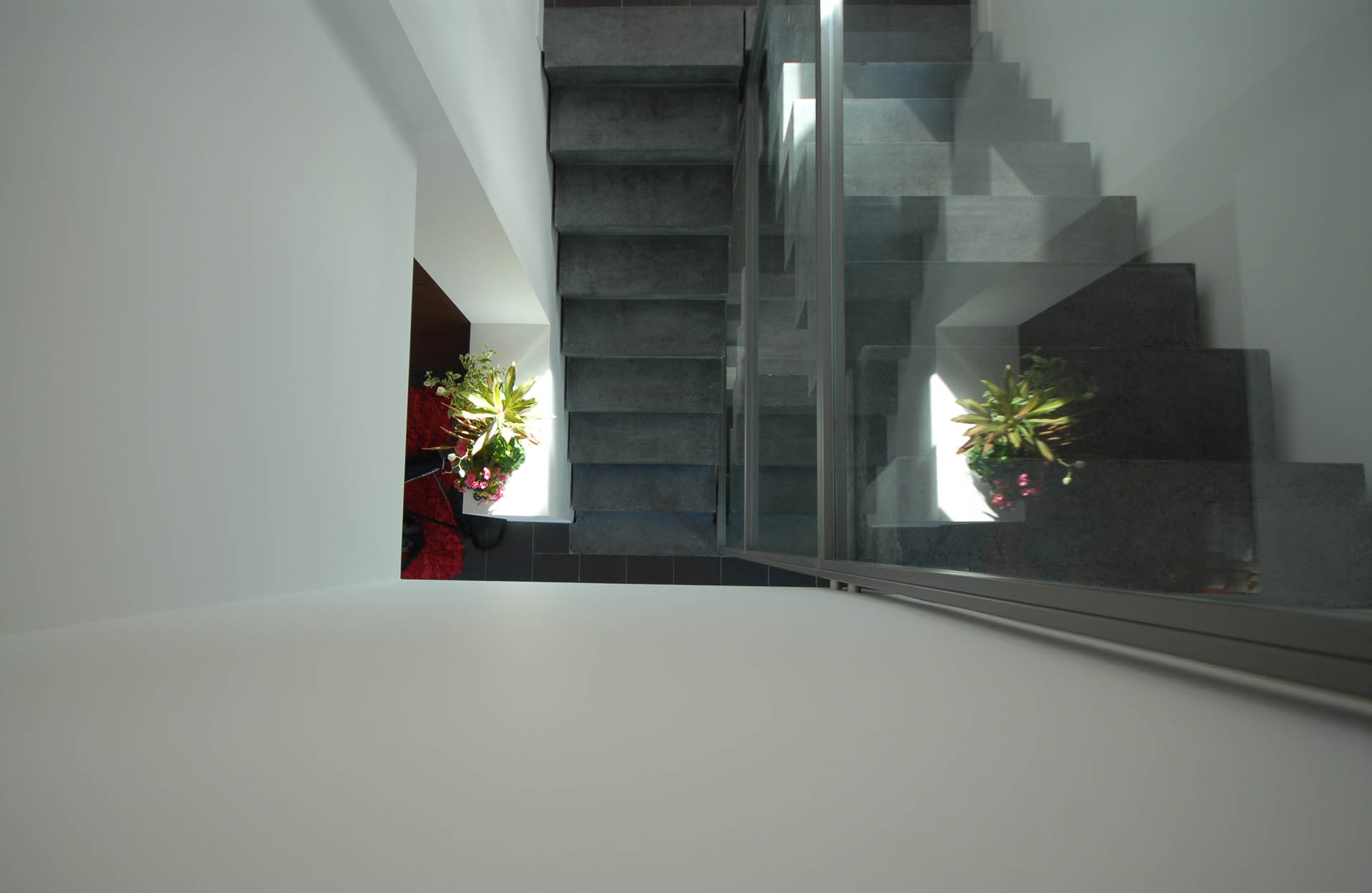 Sa distribution verticale en demi-niveaux permet d’exploiter des espaces semi enterrés profitant de jours naturels en privilégiant les relations intérieures – extérieures.